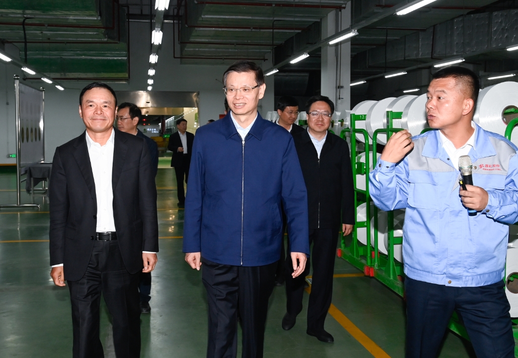 在江蘇芮邦科技有限公司,機(jī)器林立,設(shè)備高速運(yùn)轉(zhuǎn)、忙碌生產(chǎn),再生纖維源源不斷產(chǎn)出。許昆林進(jìn)車間、看展品、問(wèn)創(chuàng)新,深入了解企業(yè)的生產(chǎn)經(jīng)營(yíng)、發(fā)展方向等情況。